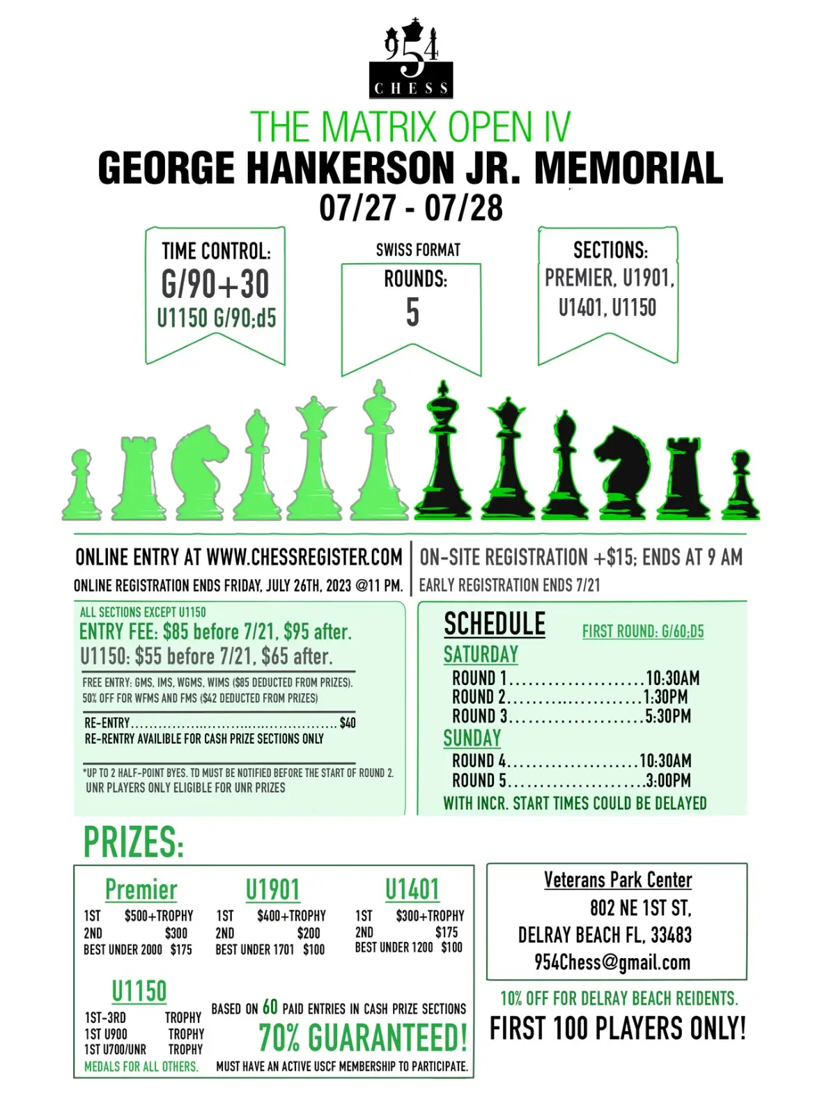 USCF Rules Will Apply… Free Entry For GMs, IMs & FMs …